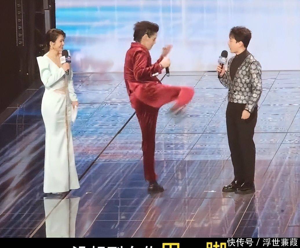 当时主持人百克力就立于其侧,浅灰调休闲西装衬得气质温润,面带笑意称赞道:“穿丝绒西装打拳还能如此舒展自如”,言语间满是真诚欣赏。