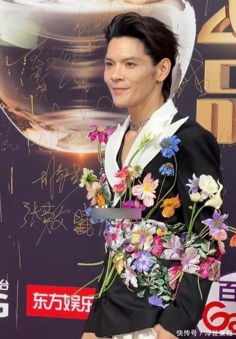 红毯环节中,他腰间缠绕着层层叠叠的鲜嫩花束,举止儒雅沉静,缓步迈至舞台中央,言谈谦和有度,分寸拿捏得恰到好处。